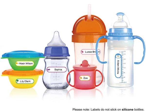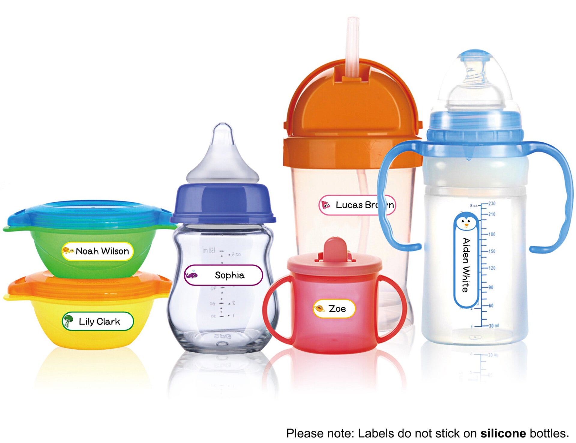 - Ideal for daycare necessities, school and camping gear, lunchbox items, sippy cups, water bottles, sporting goods, electronic devices and more. Please note: Labels do not stick on silicone bottles.
