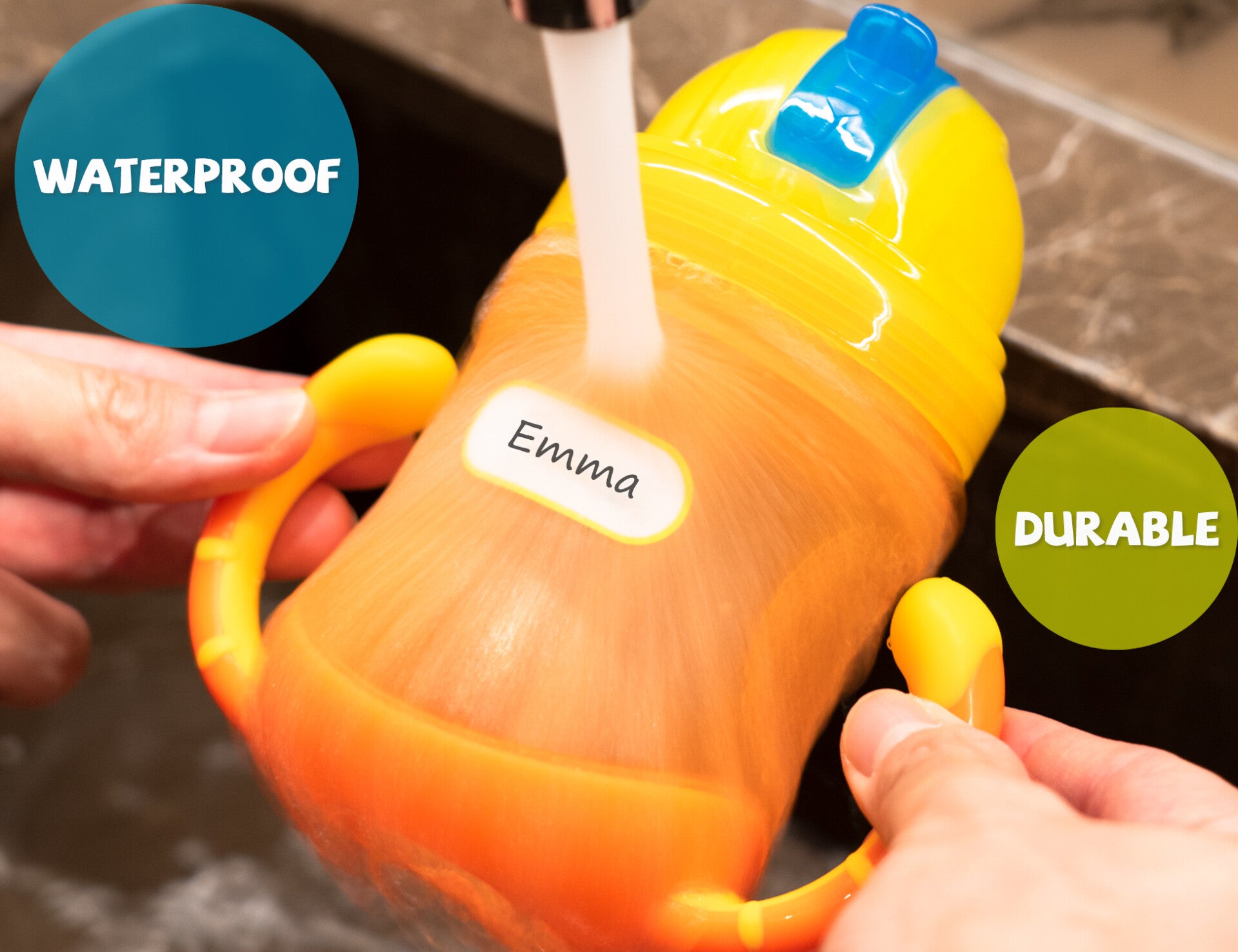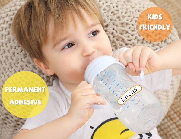 - BPA free. Waterproof, dishwasher, microwave and freezer safe. Ideal for daycare necessities, school and camping gear, lunchbox items, sippy cups, water bottles, sporting goods, electronic devices and more. Please note: Labels do not stick on silicone bottles.