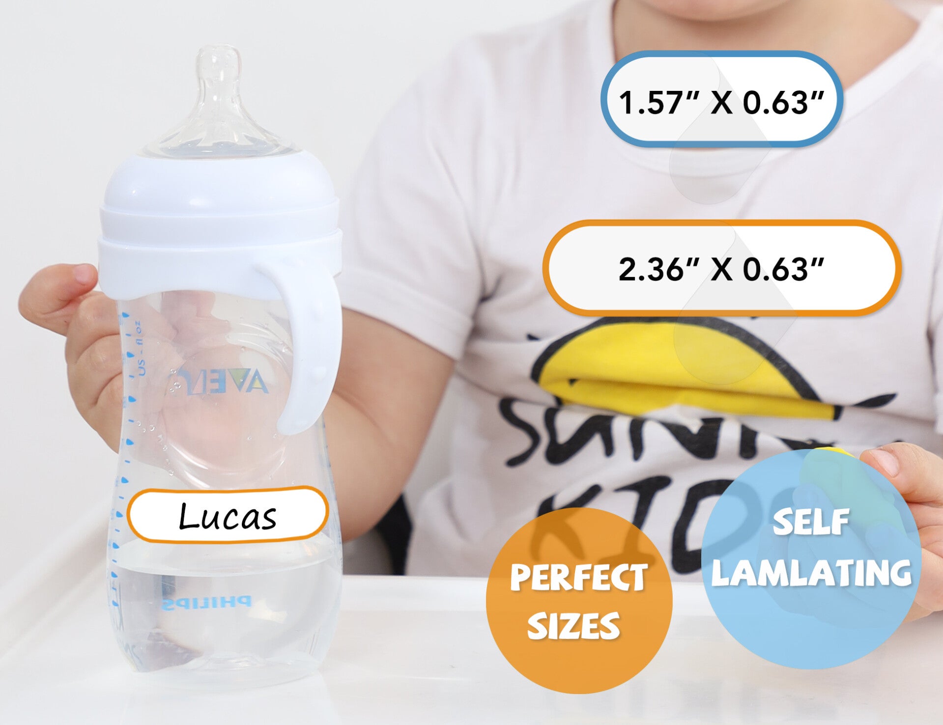 - Available in assorted sizes. Versatile for long and short names and fit around all baby bottles.